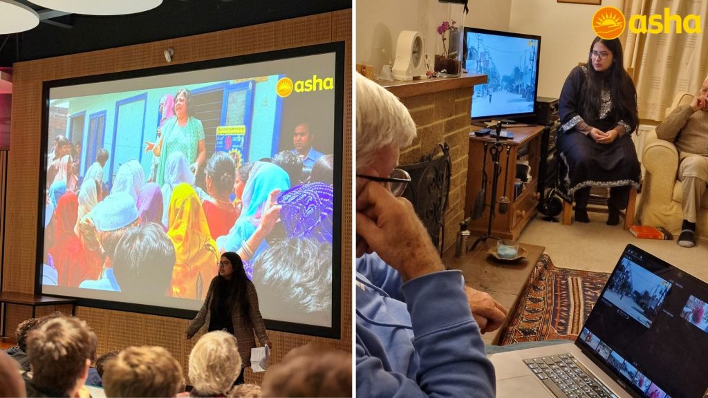 The trip was purposeful from the very beginning. At North Cadbury Primary School, during the morning assembly, the children’s genuine curiosity opened the door to honest conversations that Rubina and Annie will treasure for years. Evenings were filled with community events, including the lively Curry Night in Galhampton and a warm gathering at Norton St Philip Hall, where audiences listened with kindness and deep interest. They also visited the beautiful Sherborne Abbey, volunteered at a local food bank, joined small neighbourhood meetings, and met generous supporters whose commitment to Asha’s work was both moving and reassuring.
