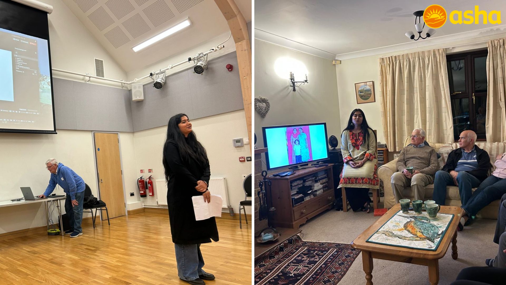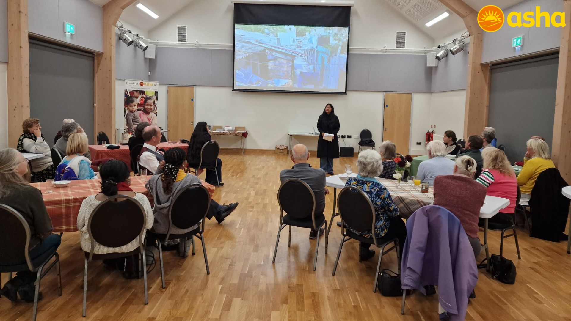 The trip was purposeful from the very beginning. At North Cadbury Primary School, during the morning assembly, the children’s genuine curiosity opened the door to honest conversations that Rubina and Annie will treasure for years. Evenings were filled with community events, including the lively Curry Night in Galhampton and a warm gathering at Norton St Philip Hall, where audiences listened with kindness and deep interest. They also visited the beautiful Sherborne Abbey, volunteered at a local food bank, joined small neighbourhood meetings, and met generous supporters whose commitment to Asha’s work was both moving and reassuring.