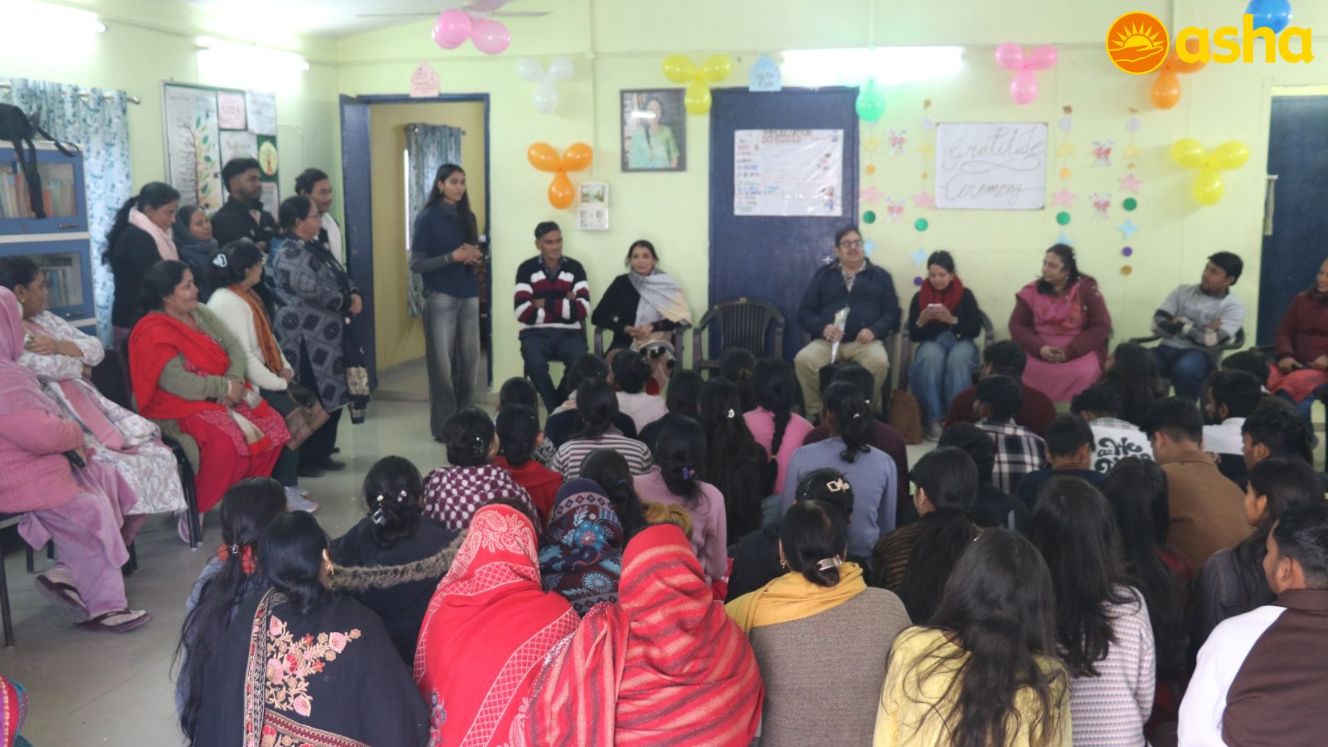 The farewell ceremony was filled with warmth and emotion. There were smiles, quiet tears and moments of reflection. Asha staff, alumni ambassadors and students from different centres gathered to celebrate Nancy and to bless her as she stepped into a new chapter of her life.