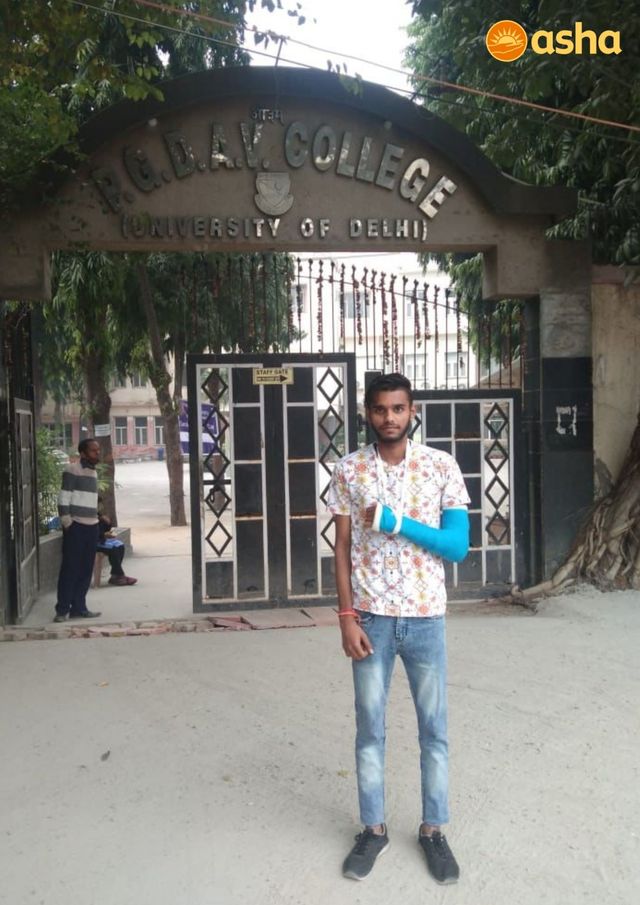Sumit’s hard work and Asha’s continuous academic and infrastructural support helped him secure 94.75% in his school-leaving class XII boards . He performed the rare feat of scoring an incredible 100% in Economics!He also developed an interest in the subject and wanted to pursue higher studies in the same field. However, there was a new set of challenges in his life. His parents were very reluctant to let him allow higher education because of the financial constraints in the family. The adverse environment in their surroundings also influenced their decision as they thought that a university education might spoil their child. However, the Asha team and the student ambassadors regularly visited his house, counselled and convinced his parents about the benefit of a university education and how it would help him earn a better living and move out of poverty. Asha team also assured them that the financial expenses on Sumit’s education would be taken care of by Asha.