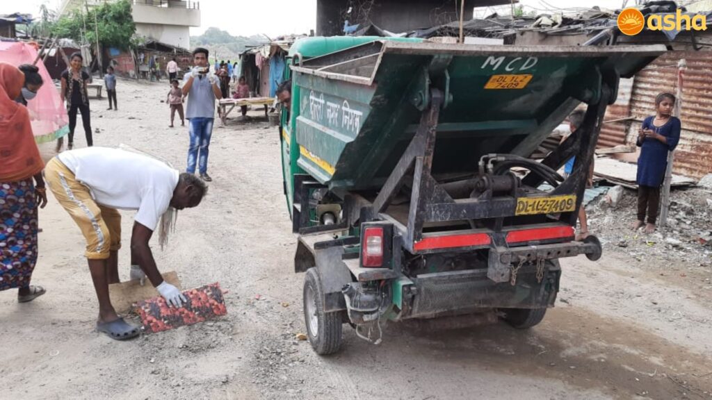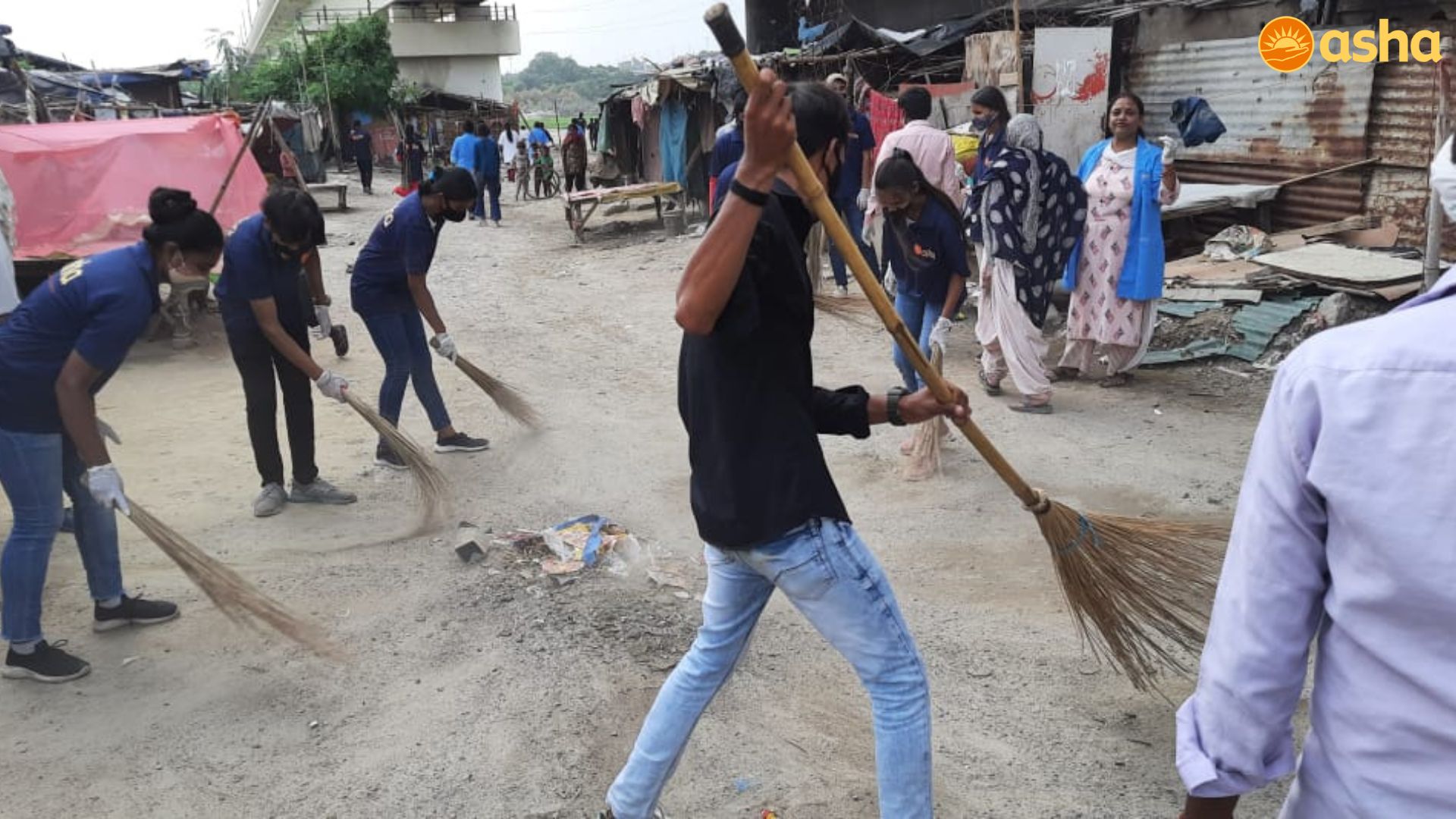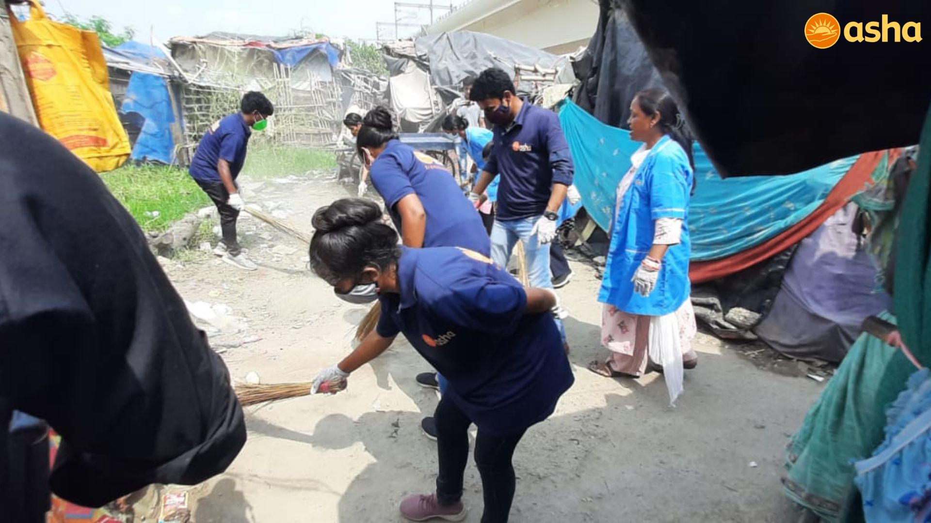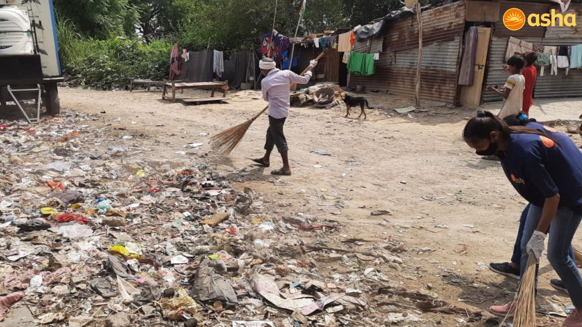 The entire area had huge amounts of garbage everywhere after the water receded. The Asha team invited the local Councillor and MLA to make a visit. Once they saw the situation, they sent a team of sanitary workers from the municipality, and they, along with our Ambassadors, cleaned up the entire area.
