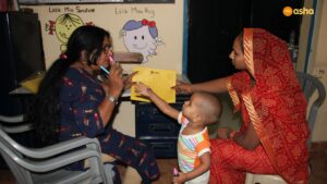 A time when the capital city of India is gripped by heat wave due to very high temperatures, the Asha Team walks across the slum communities; immunizing infants and vaccinating children against diseases, checking the pregnant ladies, following up with the cases of Tuberculosis and ensuring that the patients are properly taking their medicines and also making the young mothers and pregnant ladies aware of the importance of breastfeeding and proper nutrition.