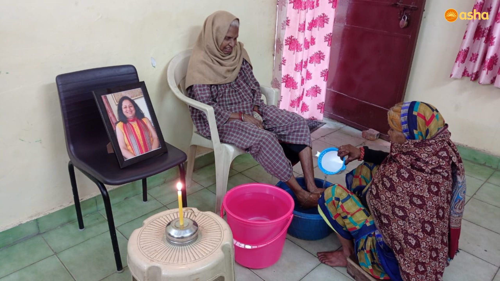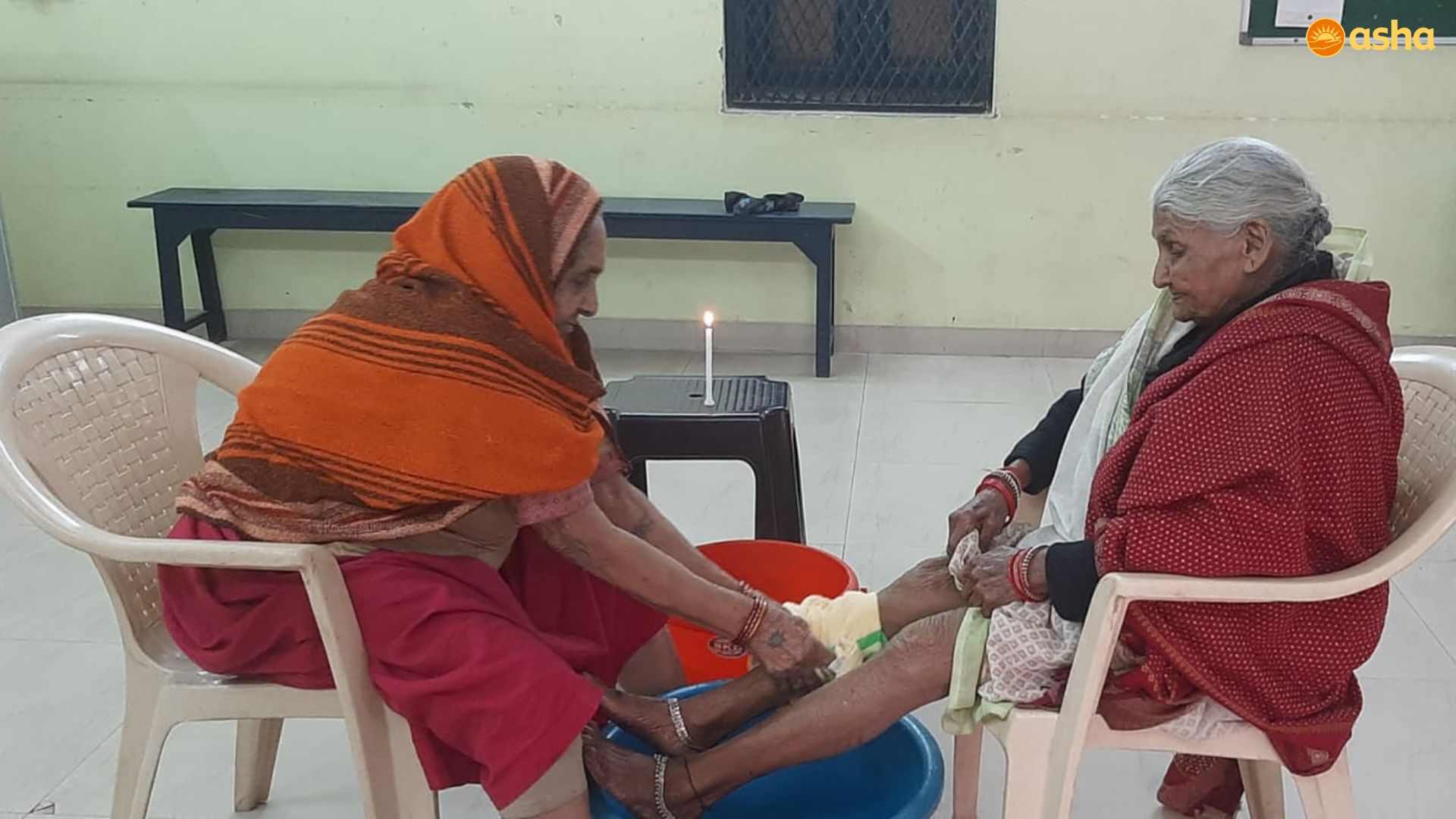 Bhagwati a Hindu Woman washes the feet of Ansari a Muslim woman