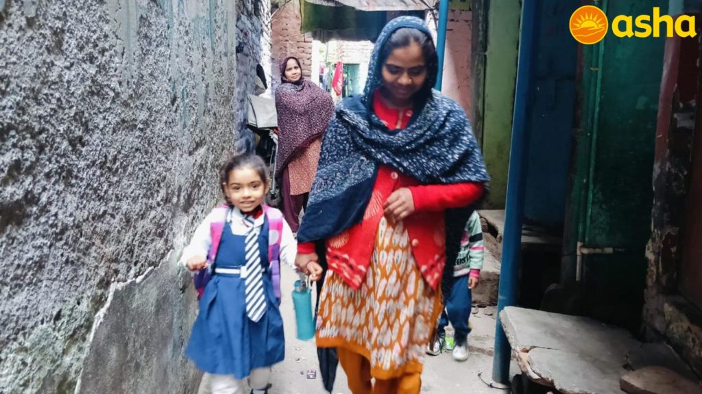 At last, Sugra was able to persuade a school principal to admit Inaya, despite complications arising from her birth certificate having been issued in another state. This was possible because of the trust the principal placed in Asha’s long-standing work in the slum community.