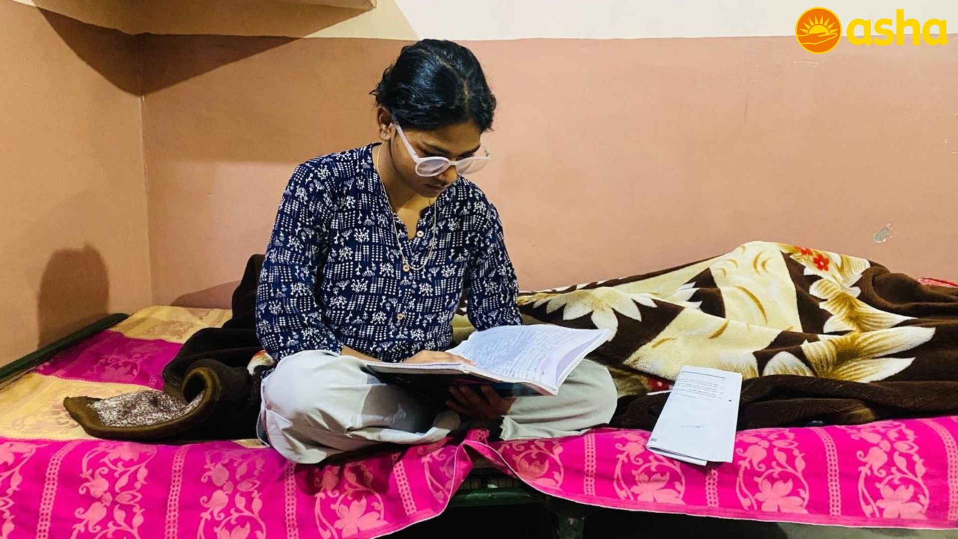 Today, Laxmi has filled out her university entrance application and is preparing with full dedication at the Asha Centre — practicing mock tests, solving sample papers, and guided by mentors who believe in her potential.