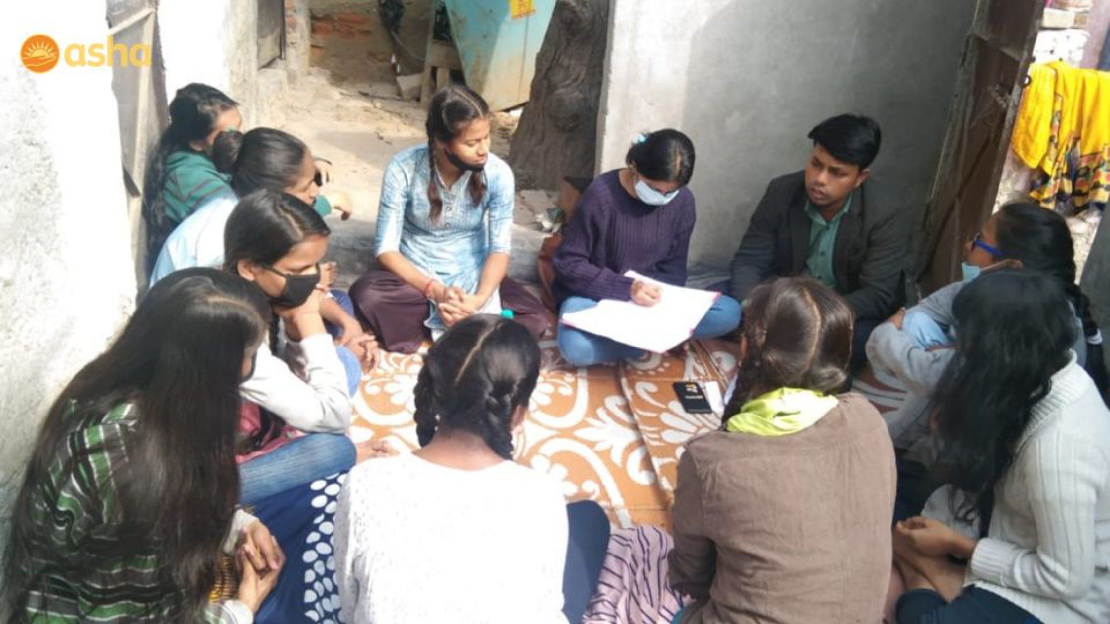 Sitting in the slum lanes on the ground and motivating school leaving students to work hard for university admissions. There are many Asha communities where there is no building. What a wonderful commitment!!