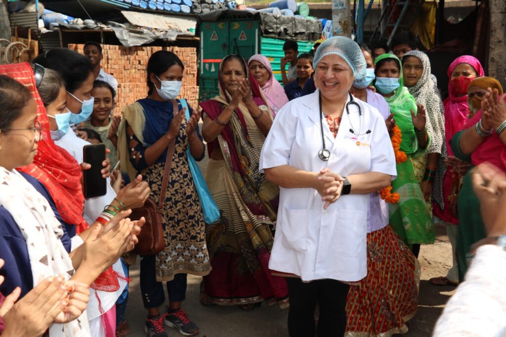 It was a wonderful and blessed moment for everyone in the Asha slum at Zakhira when Dr Kiran paid a visit to the community. The Asha team and the community members warmly welcomed her as she met the children, women, youth and men. Dr Kiran talked to everyone individually and instantly created a bonding of warmth, affection and assurance.. Her presence mesmerized all those she met and made them comfortable, and they felt touched as they narrated their life stories to Dr Kiran. The spontaneous emotional connect was evident as she hugged the young children, including toddlers, embraced the women, blessed the young adults to dream big, and connected with the men and related to their day-to-day challenges. She also enquired from everybody about their health and wellbeing.