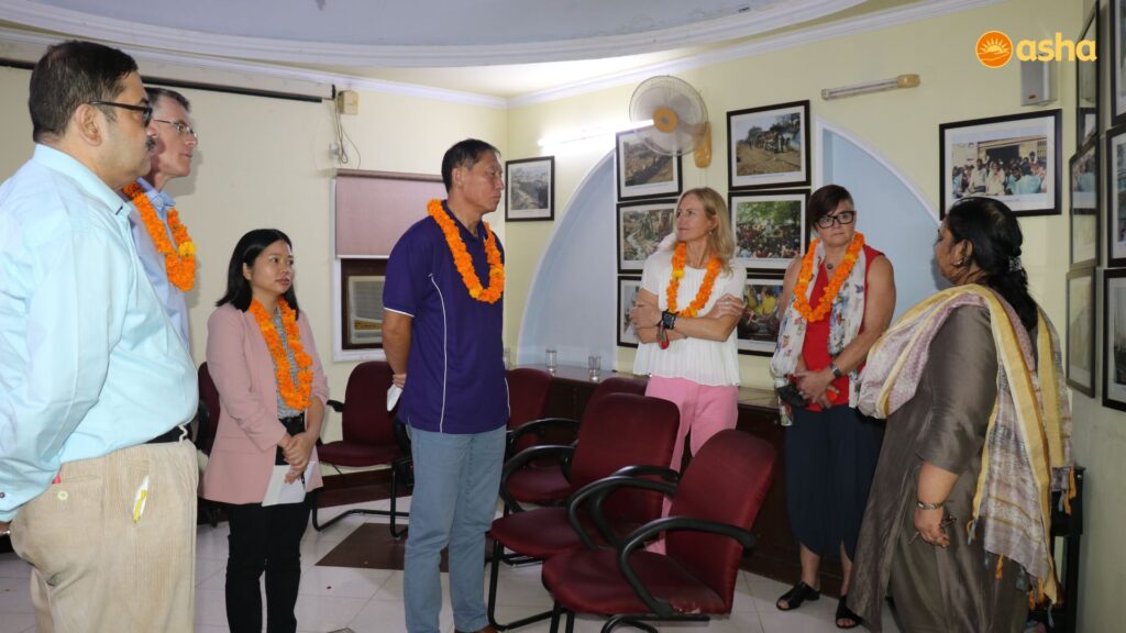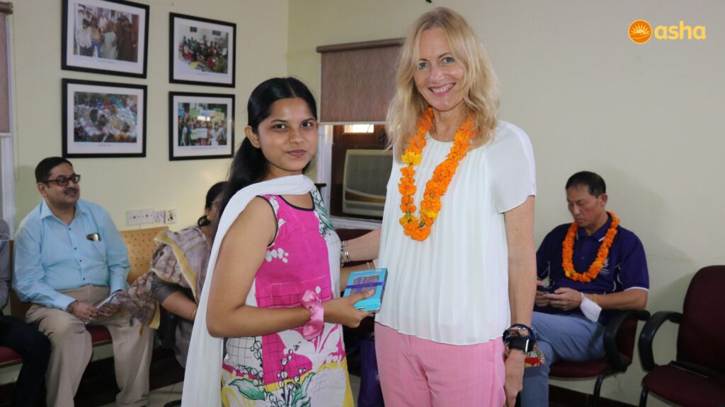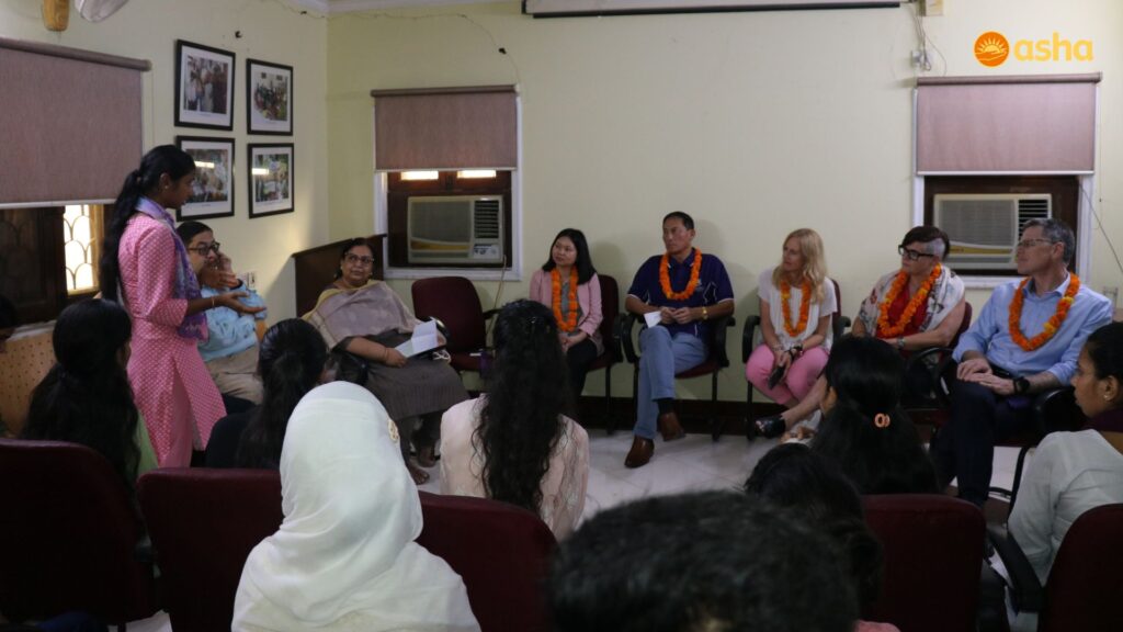 After the cordial welcome and the introductory conversation with the Asha team, they interacted with the Asha graduates and college students. The graduates and the students shared their life challenges in the slum communities and their education journey with Asha’s support receiving academic counselling, university-related expenses, IT Lab facilities, internships in prestigious institutions and spoken English classes. Students also shared how Asha is helping them to prepare for International Higher Education. The team was highly impressed to hear the achievements of our students and motivated them to dream and strive high to bring a change.