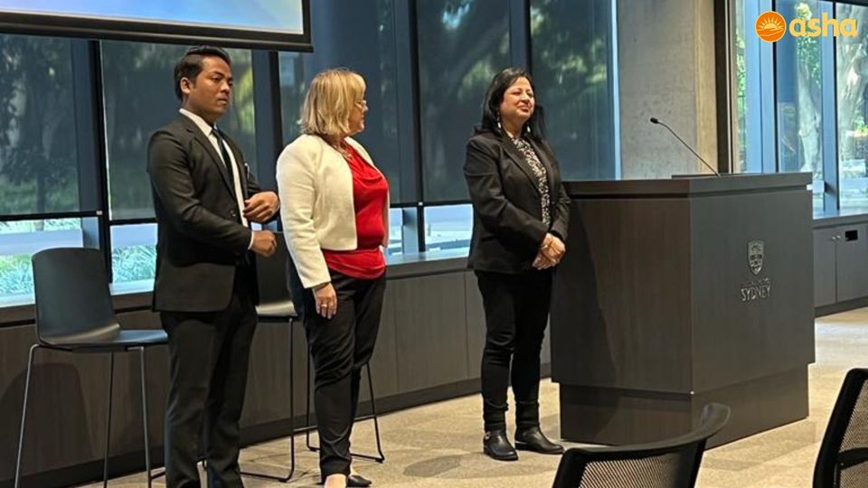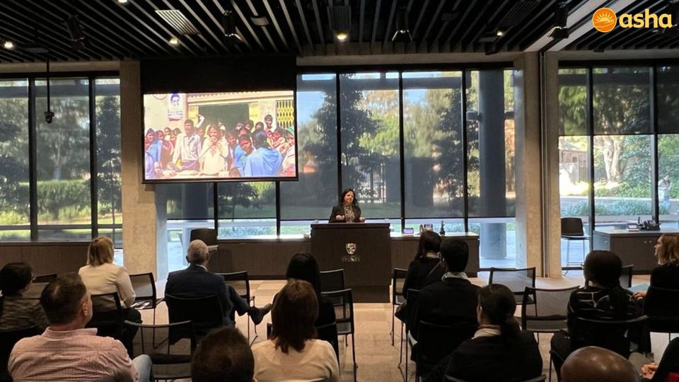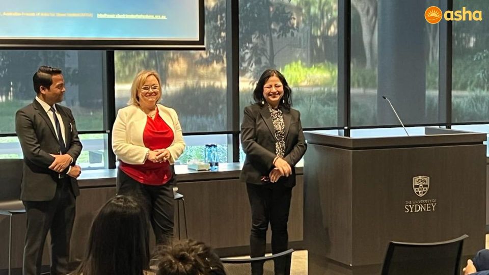 Message from Tushar Joshi, Asha Student doing Masters of International Relation at the University of Sydney – ‘It was a great pleasure for the University of Sydney to host Dr. Kiran Martin, Founder Director of Asha, on Aug 22. She spoke about the work of Asha to a gathering of senior university officials, faculty, and students. I had the great opportunity to share my story as well.